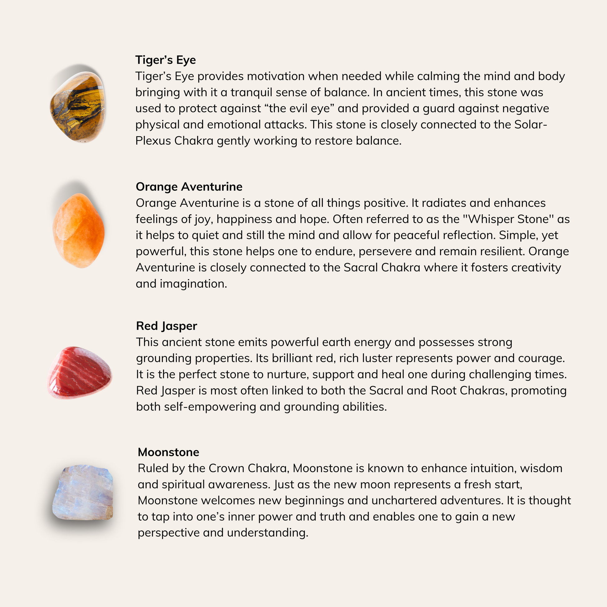 • Tiger’s Eye (Solar Plexus Chakra – Confidence and Courage)