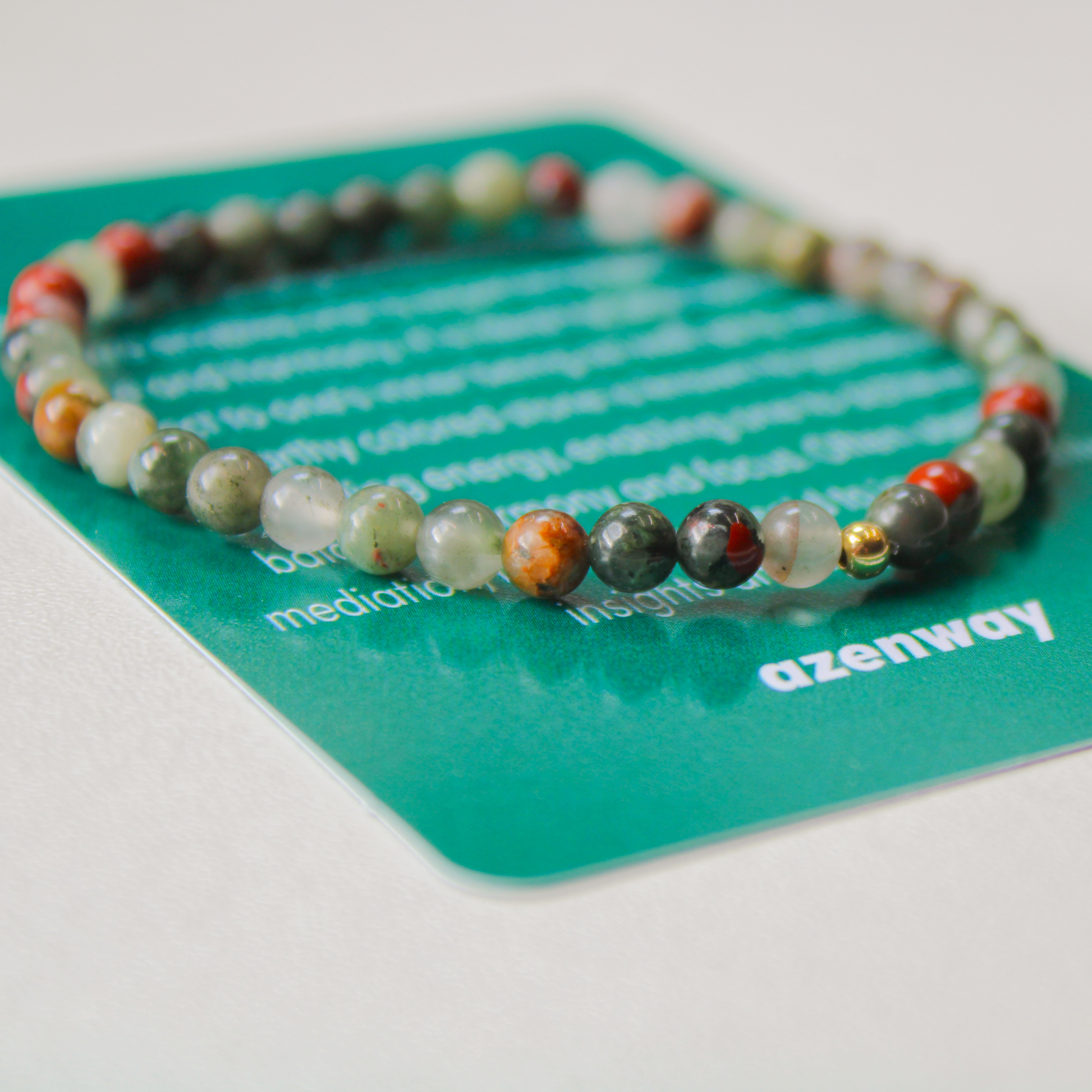 This Bloodstone Healing Bracelet is crafted with 4mm natural bloodstone crystals—believed to enhance courage, support physical strength, and protect energy flow. Each stone carries ancient healing wisdom, grounding you while revitalizing your body and spirit.
