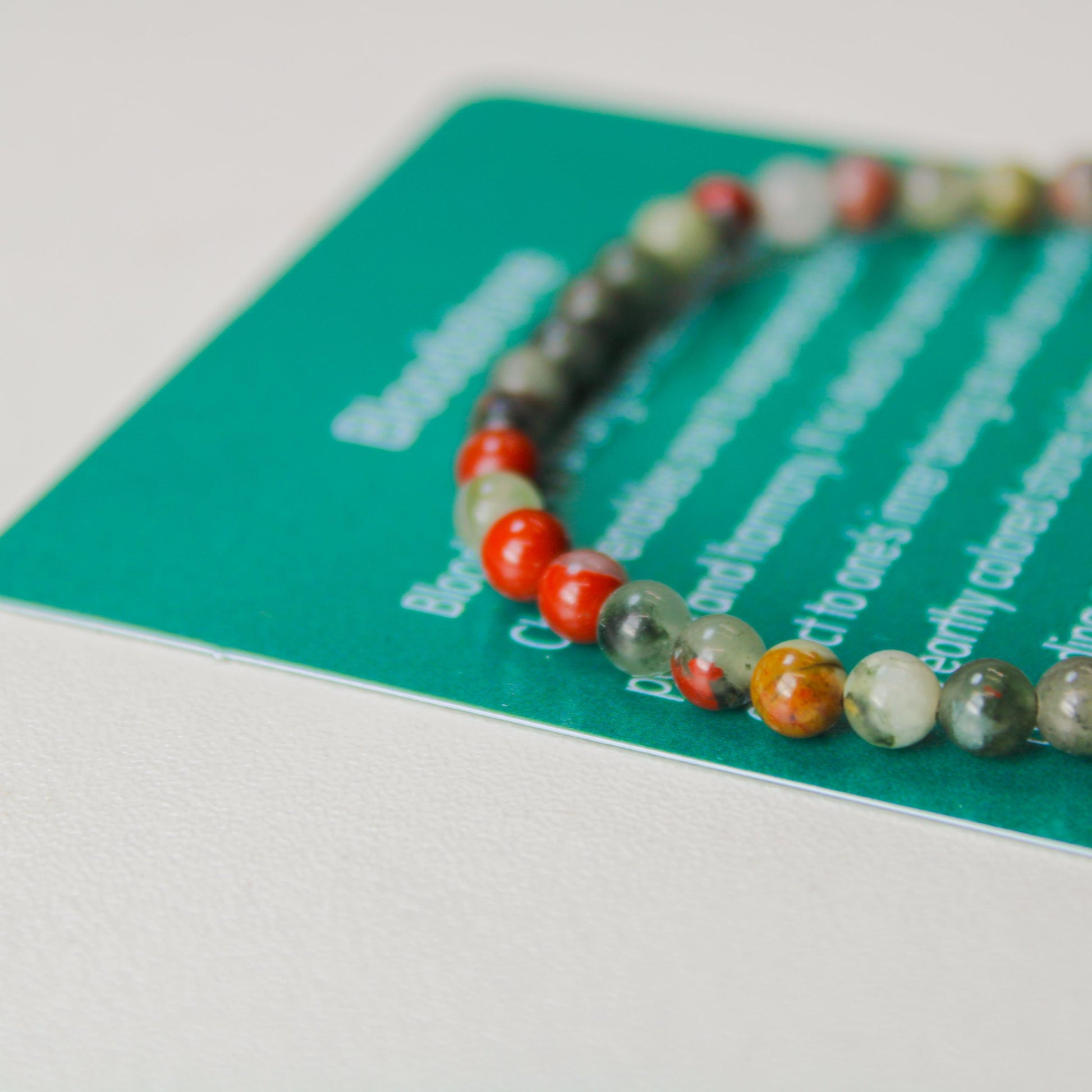 Bloodstone Bracelet – 4mm Natural Crystals + 14K Gold-Filled Bead (Hypoallergenic)