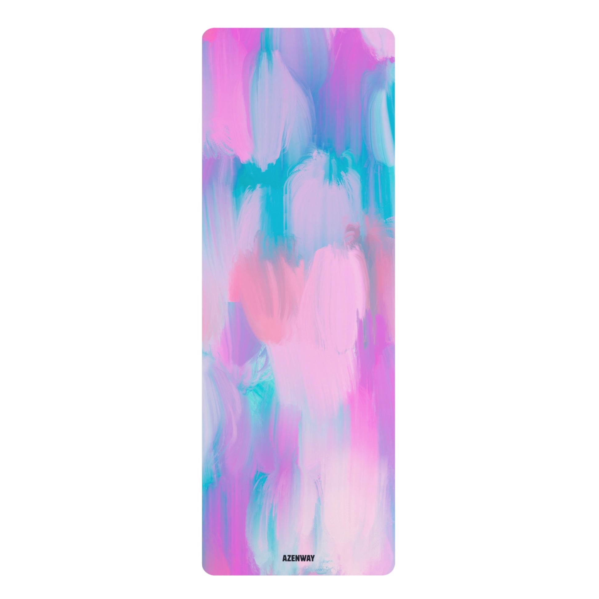 The Colorful Acrylic Yoga Mat features layered brushstrokes of pink, teal, lavender, and soft blue — blending like an aura in movement. The abstract design feels fluid and expansive, inviting creativity and calm into your practice.