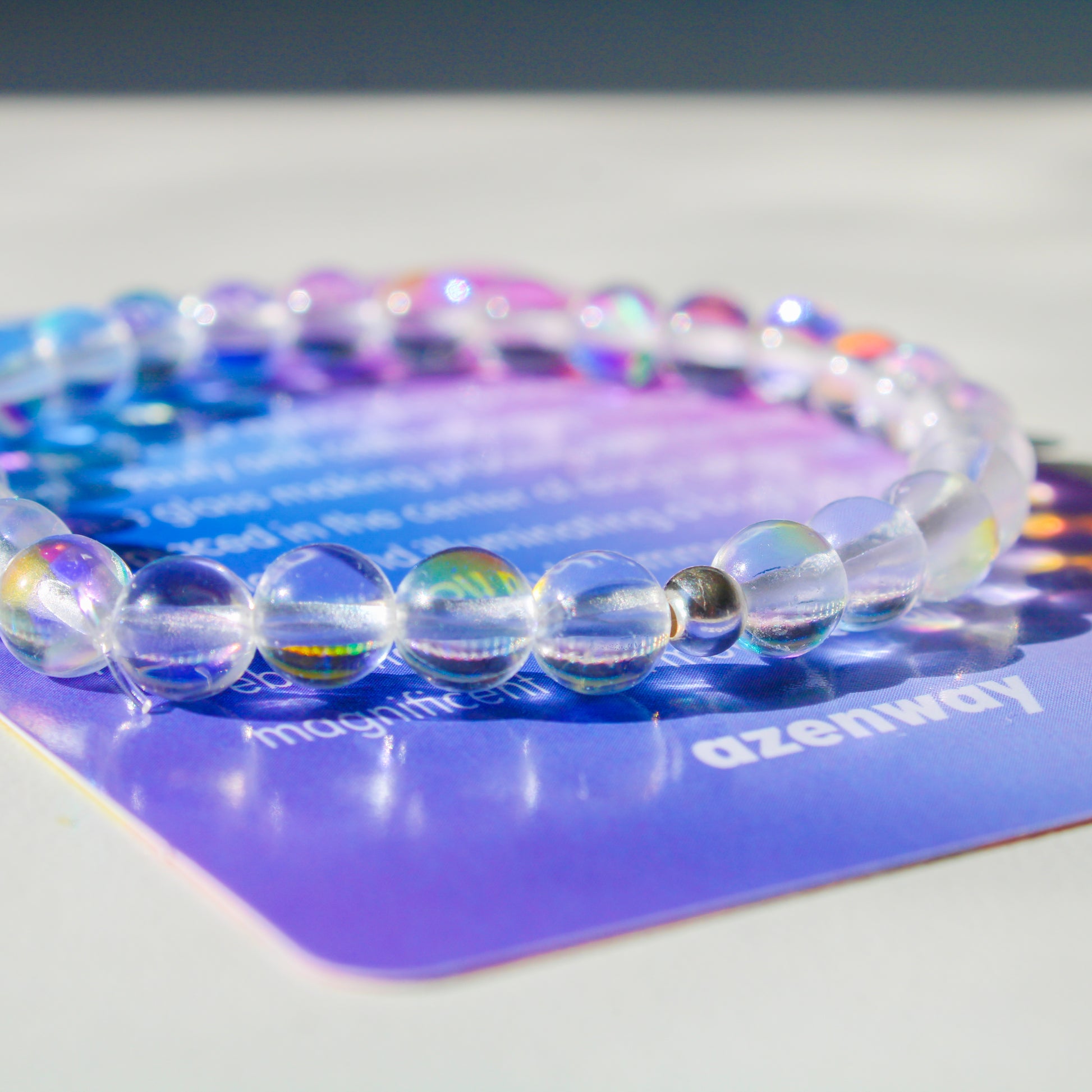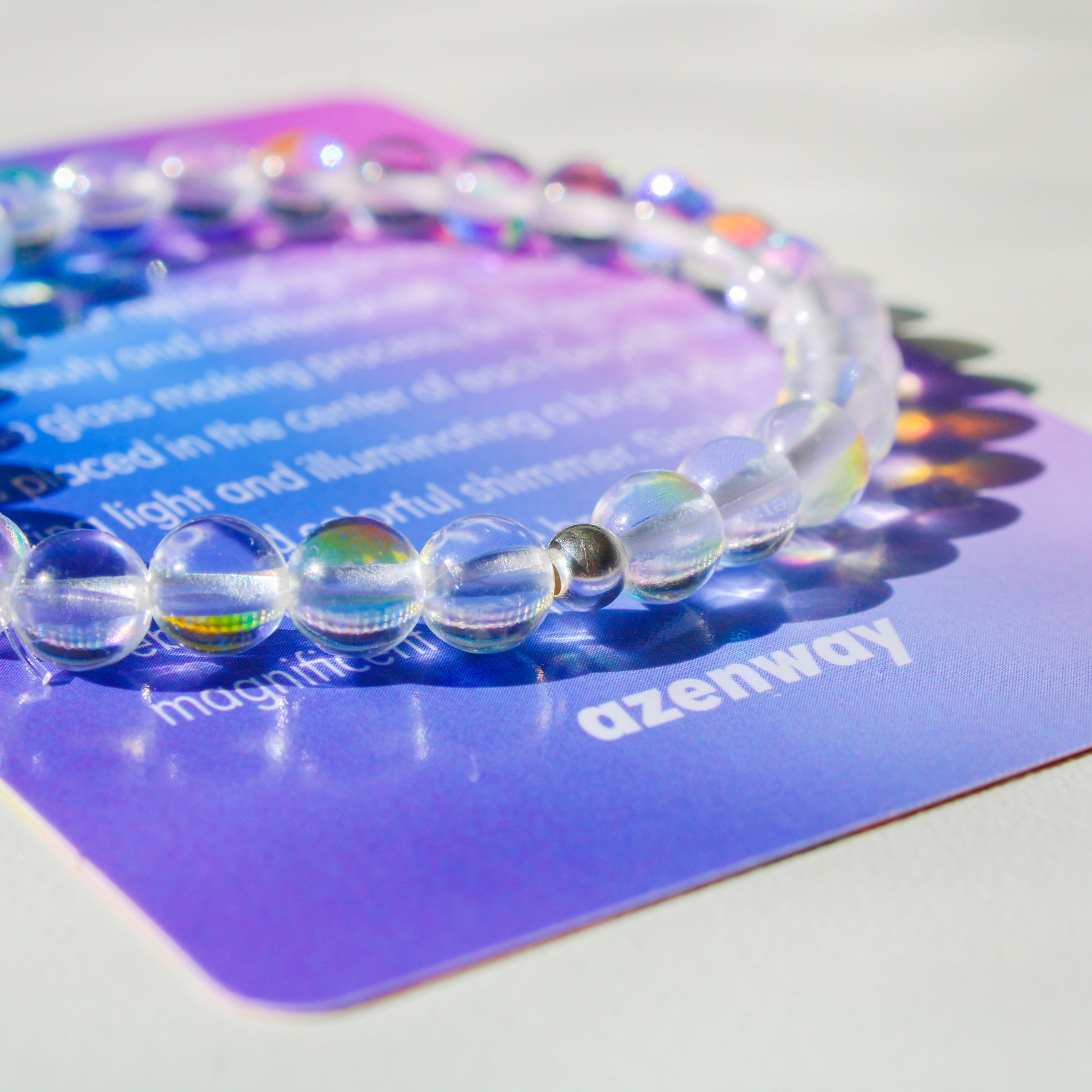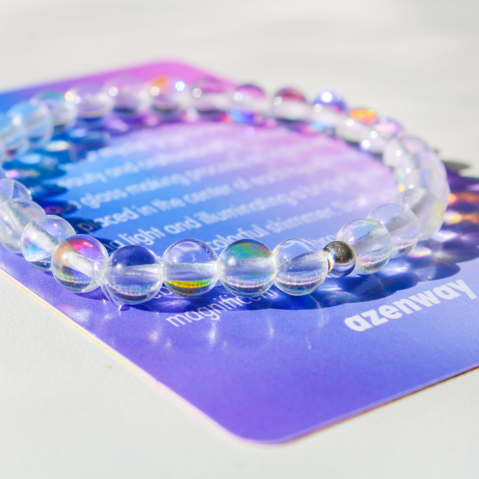 ✨ Mystic Glass: Inspired by Corning Glass, in our hometown of Corning, NY, our mystic glass bracelets represent beauty and craftsmanship. Through this unique glass making process, an iridescent core is placed in the center of each bead, thus reflecting light and illuminating a bright glow of opalescent and colorful shimmer. Similar to life's ebb and flow, these bracelets become magnificent with movement and change.