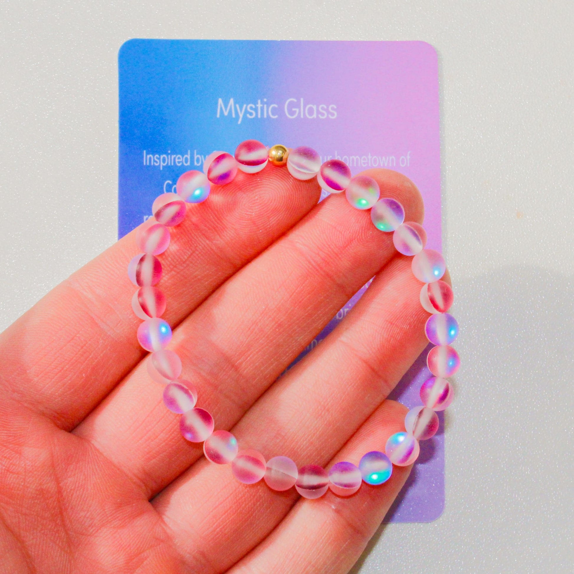 Add a touch of magic to your jewelry collection with this stunning Mystic Glass Bracelet, crafted with 6mm iridescent mystic glass beads and a single 4mm 14k gold-filled hypoallergenic bead. The shimmering, multidimensional hues of mystic glass evoke an air of mystery and wonder, making this bracelet a perfect accessory for any occasion.