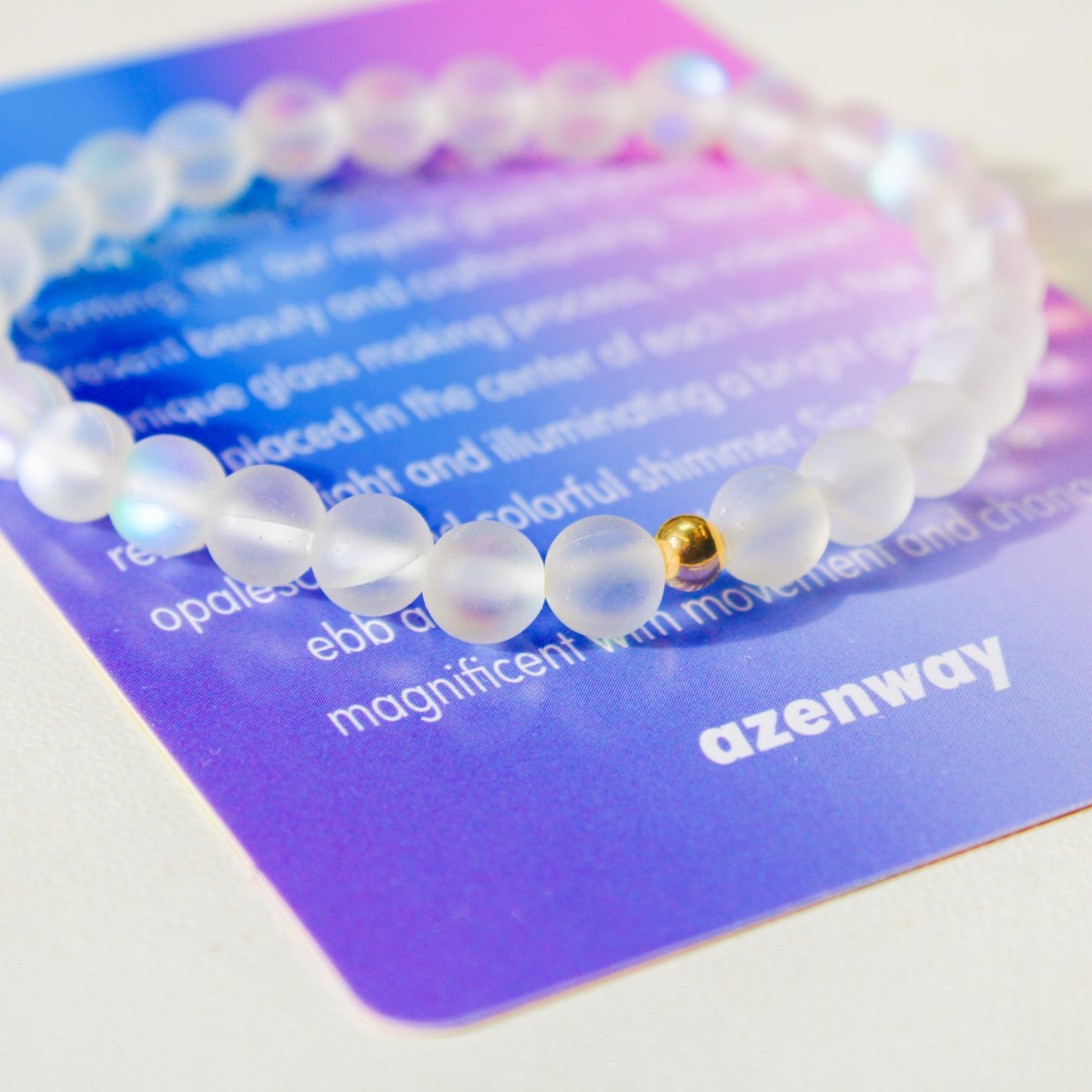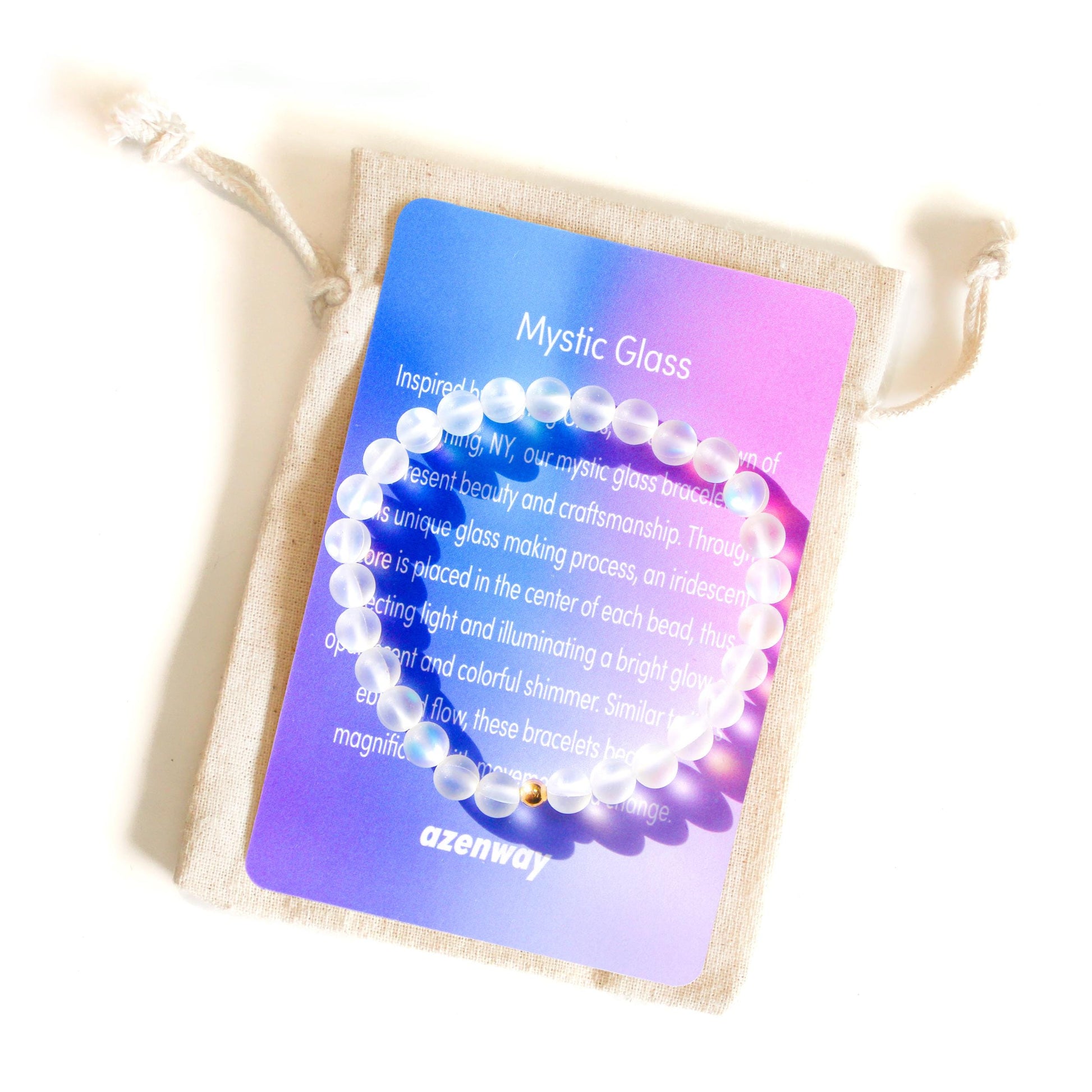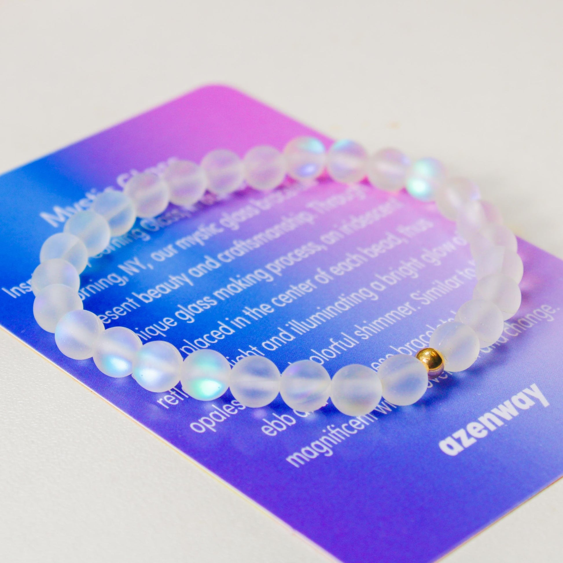 Mystic Glass: Inspired by Corning Glass, in our hometown of Corning, NY, our mystic glass bracelets represent beauty and craftsmanship. Through this unique glass making process, an iridescent core is placed in the center of each bead, thus reflecting light and illuminating a bright glow of opalescent and colorful shimmer. Similar to life‘s ebb and flow, these bracelets become magnificent with movement and change.