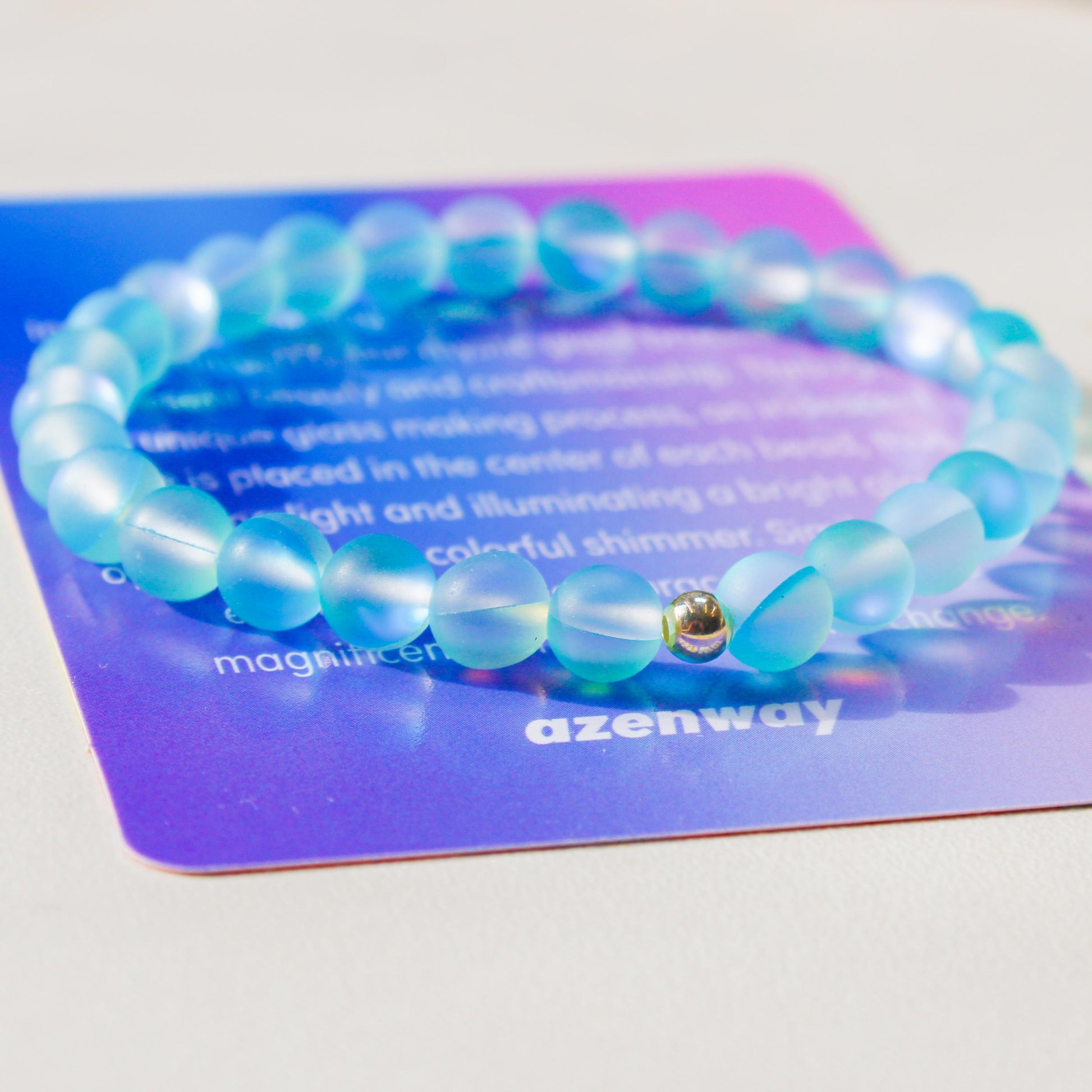 Enchanting Mystic Glass Light Blue Healing Bracelet Iridescent 6mm Beads with Hypoallergenic 925 Sterling Silver Bead