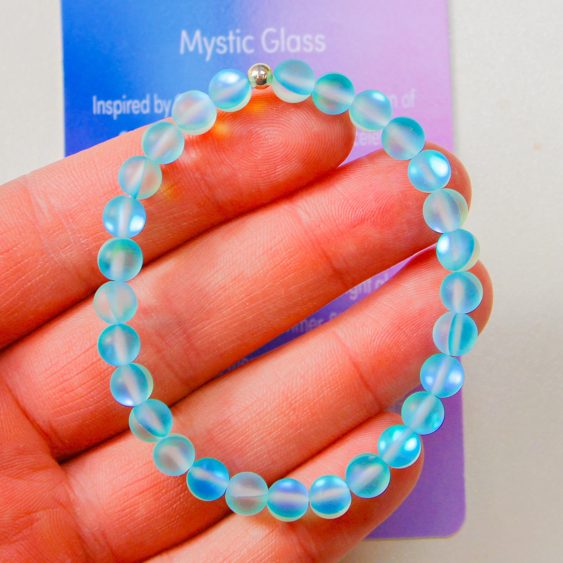 Add a touch of magic to your jewelry collection with this stunning Mystic Glass Bracelet, crafted with 6mm iridescent mystic glass beads and a single 4mm 925 sterling silver hypoallergenic bead. The shimmering, multidimensional hues of mystic glass evoke an air of mystery and wonder, making this bracelet a perfect accessory for any occasion.