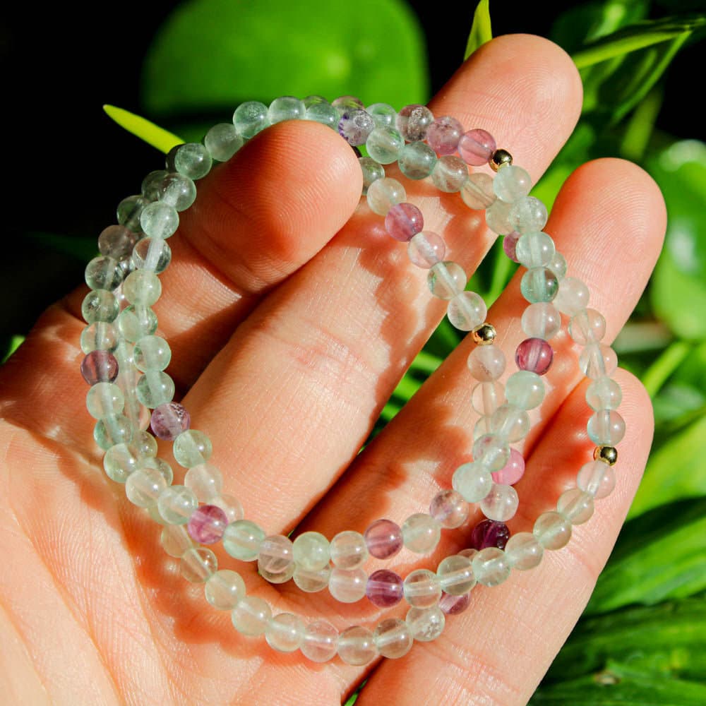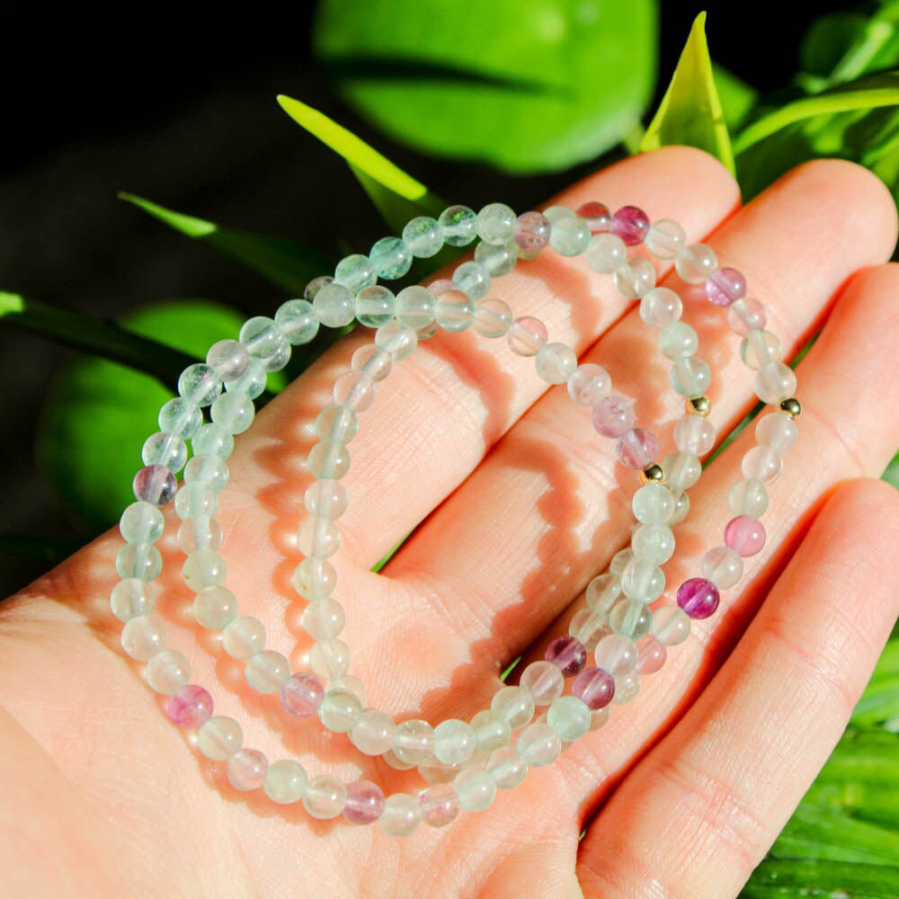 Fluorite Healing Crystal Energy Bracelet with 4mm Natural Gemstones and 14K Gold-Filled Hypoallergenic Bead