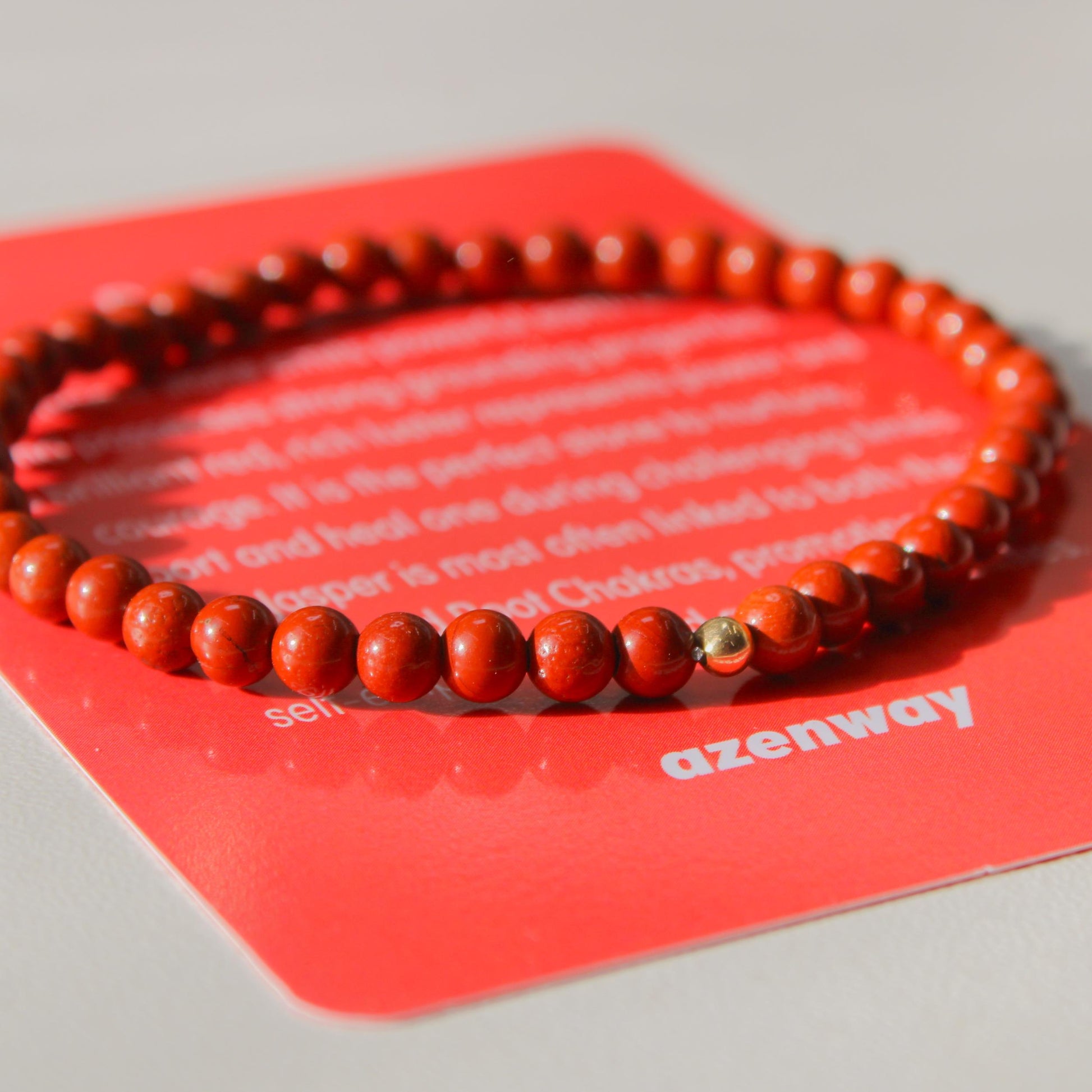 Red Jasper Healing Crystal Energy Bracelet with 4mm Natural Gemstones and 14K Gold-Filled Hypoallergenic Bead