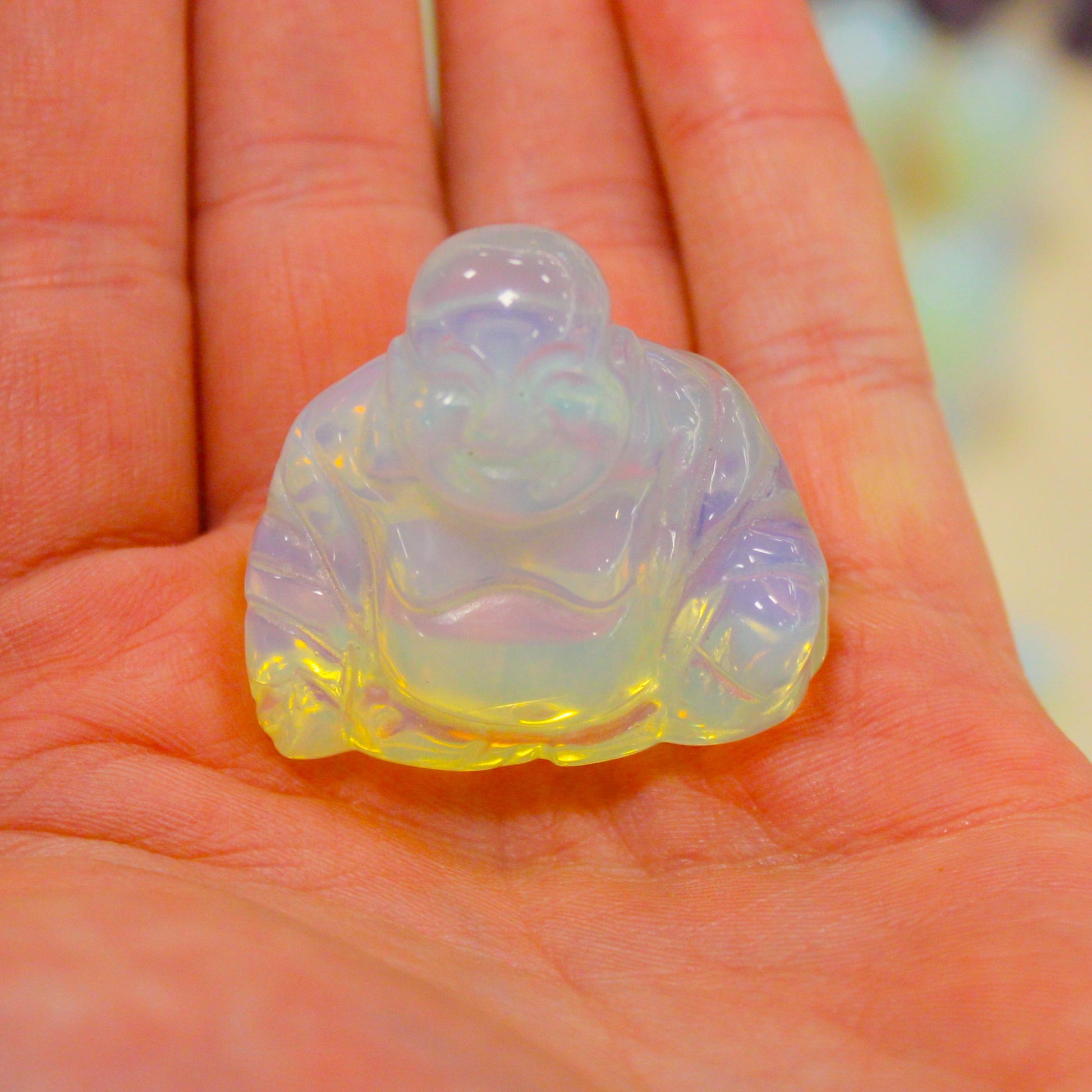 Small Opalite Buddha Figurine Carved Healing Crystal for Peace & Balance