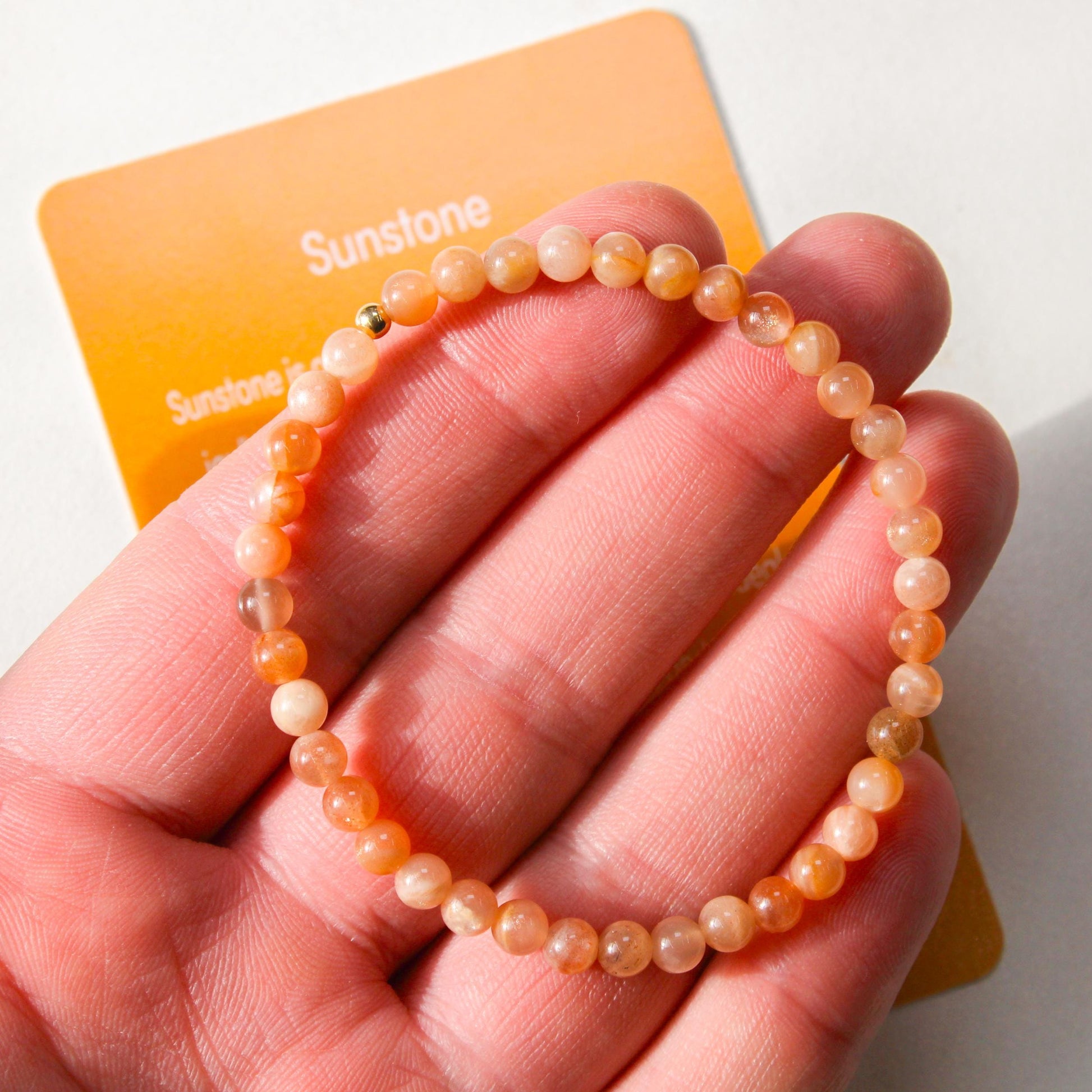 Premium Sunstone Beads: Crafted with genuine 4mm sunstone beads that display warm, shimmering hues of peach and gold, perfect for brightening your day.